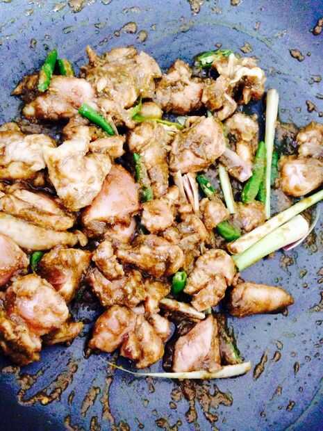 Tiro en los tallos de la hierba machacada, así como los chiles ojo de pájaro.