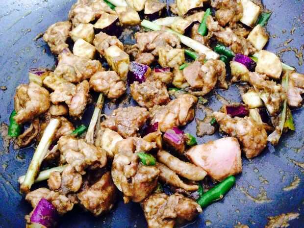 Poner en las berenjenas en cubos y continuar sofriendo durante un minuto.