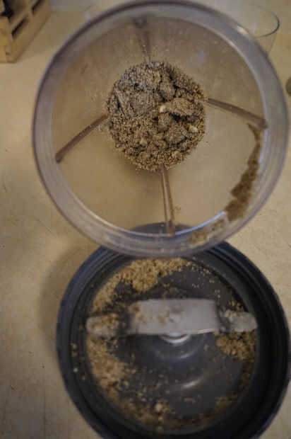 Si tienes un Nutribullet o bala mágica, poner las almendras, chia y cáñamo corazones en la taza de bala grande con el destornillador plano y mezcla durante unos 20-30 segundos hasta que se forme polvo. Se trata de tu proteína en polvo.
