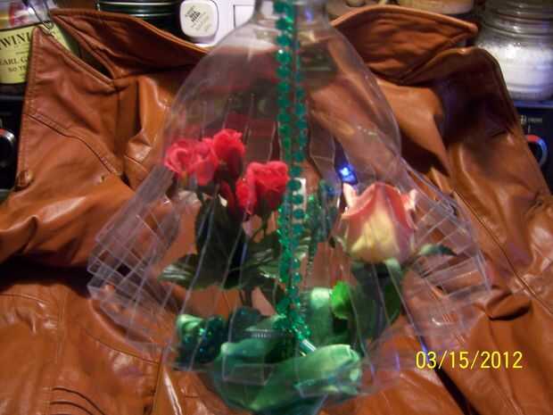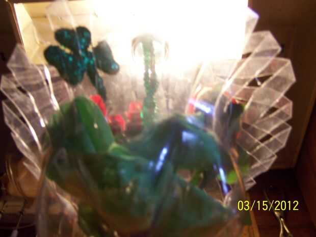 Colgar tu creación hasta donde puede disfrutar de todo! Rellenas de mina alguna cinta beeds verde, tréboles y flores de seda. Use su imaginación. Y luego en las próximas vacaciones, cambiar el interior cosas para adaptarse a esa celebración. Viene Semana Santa, estoy ya pensando en, huevos, cintas de colores pastel, flores de seda y un conejito y chick! ¡ Disfrute! Triumphman