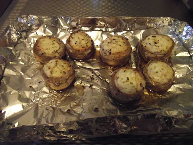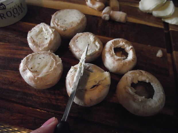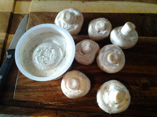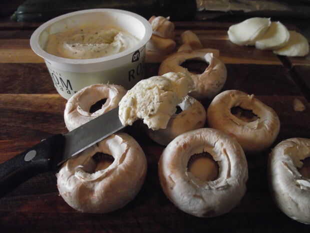 Poner en el horno o en la barbacoa, espere hasta que el queso crema se derrite y se hacen los champiñones.