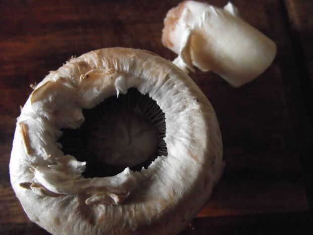 Tomar las setas de botón y empujar el vástago. Se desprenderá fácilmente y deja un agujero en la seta. La seta se llenan de queso crema, agregue sal y pimienta. Poner unas gotas de aceite sobre un trozo de papel de aluminio y colocar los champiñones sobre ella. Asegúrese de obtener aceite de oliva en las setas. En la barbacoa el estaño no es necesaria, pero evitará champiñones más pequeños para caer en los carbones y encontrar el aceite de oliva una buena adición a la receta.