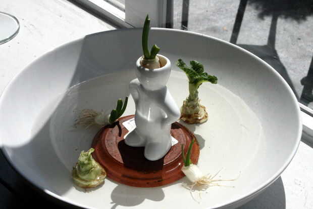 Nota sobre la lechuga: se puede ver que sólo uno de ellos está creciendo. Supongo que tienes que dejar un par de hojas bebés en para que funcione.