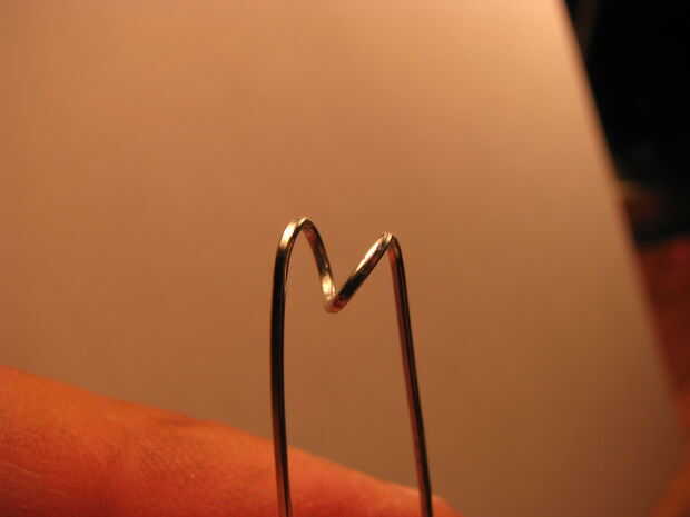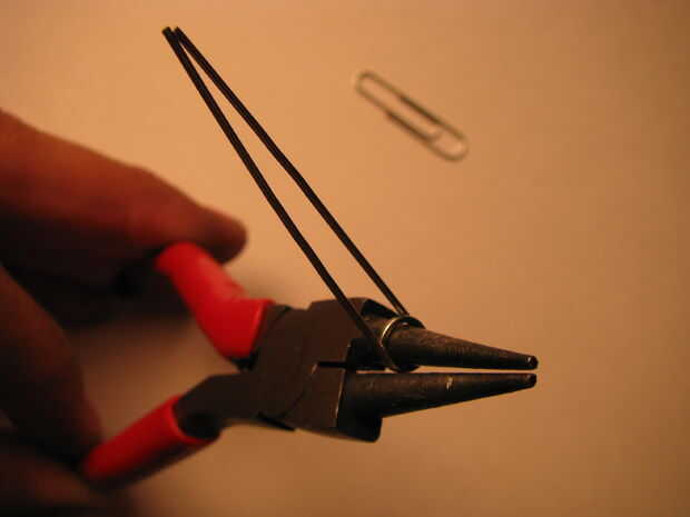 Utilizar pinzas de punta de cono para rodar un bucle en la curva. Asegúrese de que cuando Envuelva el bucle utiliza el más largo de los dos libres termina.