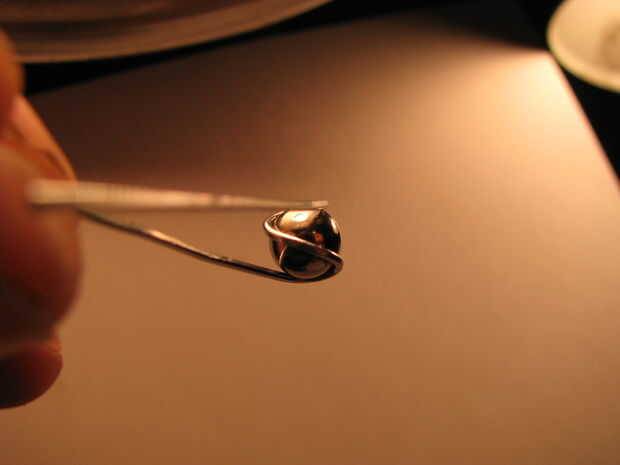 Sostenga los extremos libres de la forma del alambre con los alicates y la fuerza de la bola en el formulario.
