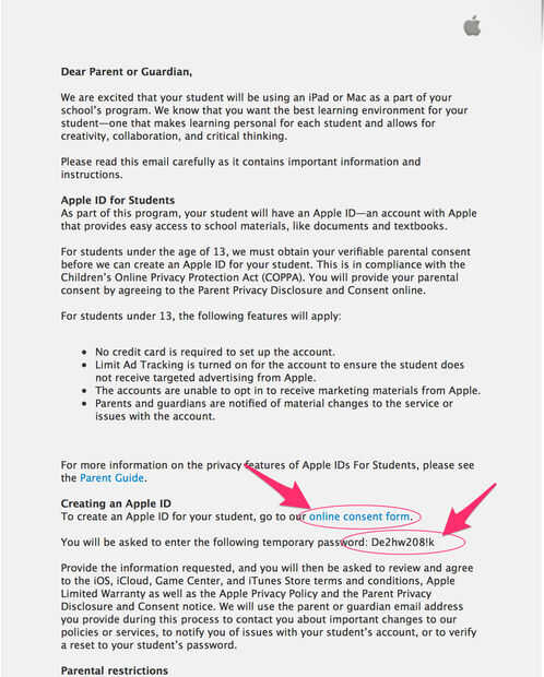 Antes de continuar, asegúrese de que leer a través del email todo de Apple. La primera vez que leí a través de este email, por favor, no haga clic en el enlace (escrito en letra de color azul) que dice "forma de consentimiento en línea". Vamos a ir allí en nuestro próximo paso.