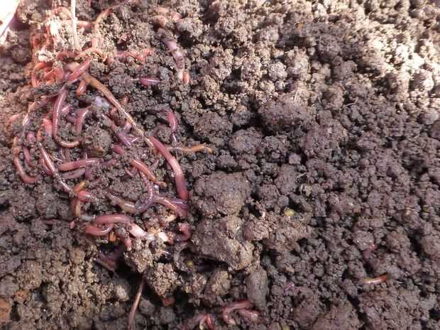 Mis gusanos llegaron embalado en gusano de comida (nada más que de humus de lombriz con algunas materias primas para los gusanos que se alimentan). He añadido los gusanos en la parte superior el material de desecho parcialmente compostado en el cubo.