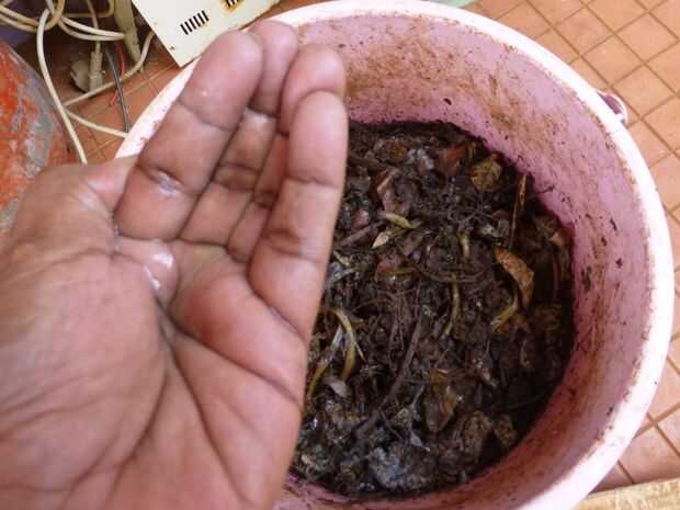 Poner los dedos dentro del material y sentir la temperatura. Si se siente caliente dentro de volumen entonces el material sin dañar las lombrices.