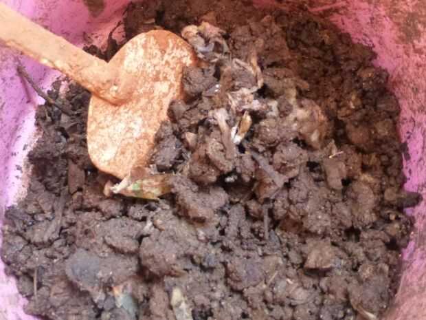 Rocíe agua sobre el material, cerrar con la tapa y guardar en la zona sombreada.