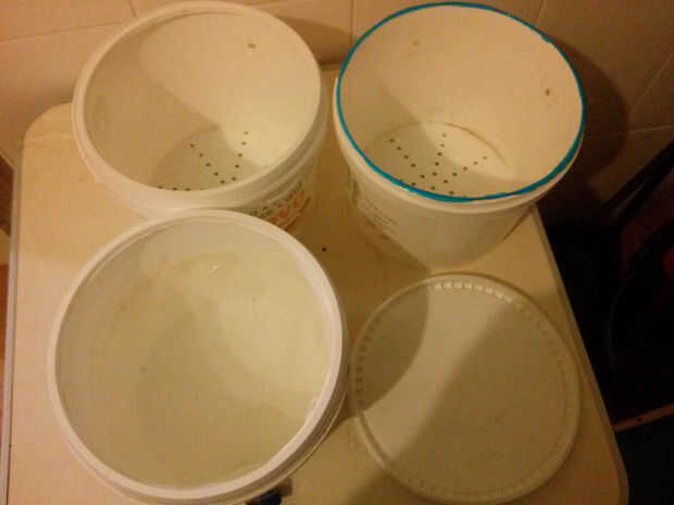 En la base de los demás cubos se hacen unos conexiones para las lombrices puedan pasar de un piso a otro. El método de trabajo es el siguiente: se echan los desperdicios en el primer piso (El cubo de lixivados es la planta baja) y las lombrices van procesando (comer-cagar, cagar comer,...), cuando se vea ese n lleno se programaran un echar los desperdicios en el siguiente. De piso de la de las lombrices solas se irán arriba cuando ya no Charlotte nada más gestión en el están. En ese momento tendrás un rico humus de lombriz listo para abonar tus plantas.