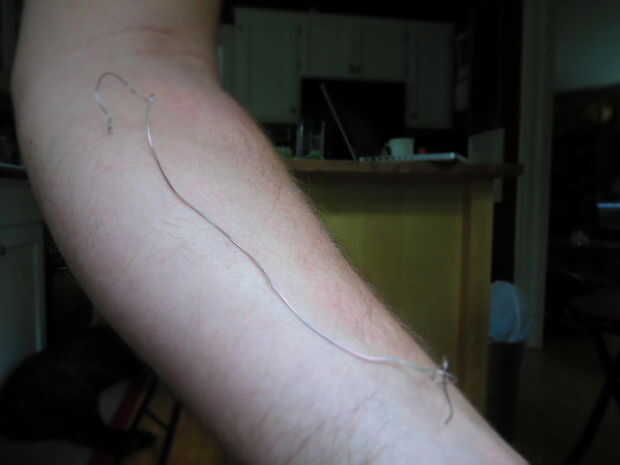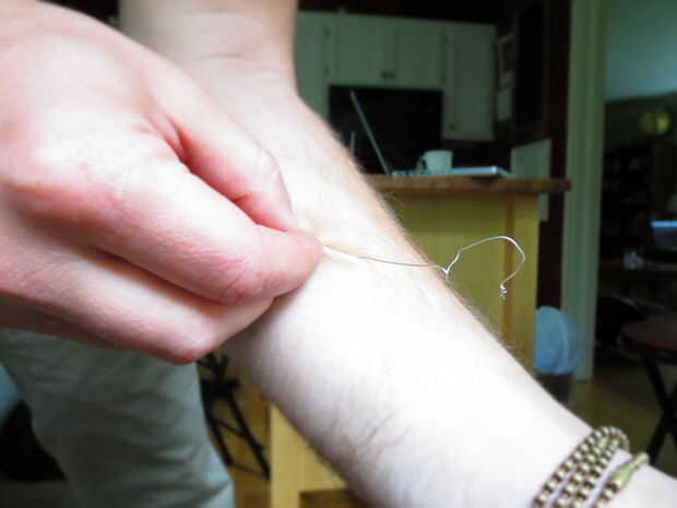 Mantenga la piel pellizcada hasta que el pegamento se seca. Esto parece que sería doloroso, pero no es... casi tan doloroso como real empalar. Los kiddos importaba en absoluto.