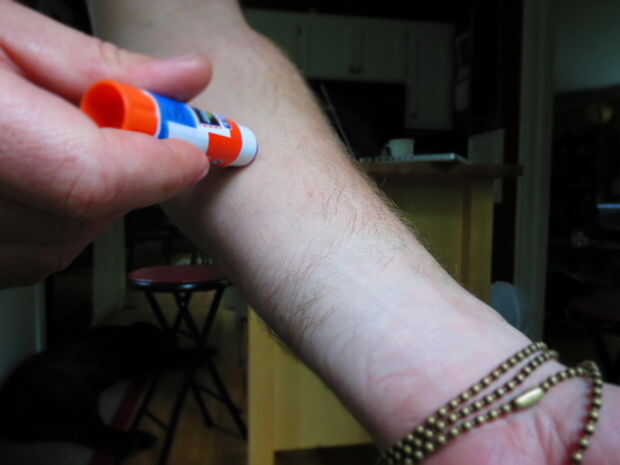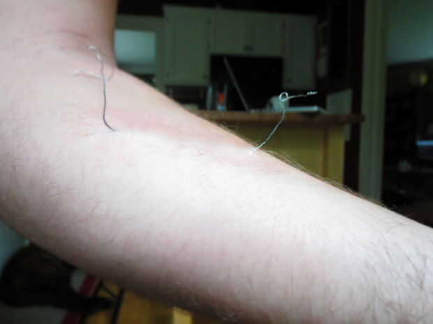 Es tan simple como aplicar pegamento a la piel, dejándola secar hasta hortera, aplicar el objeto y pellizcando la piel cerrada.