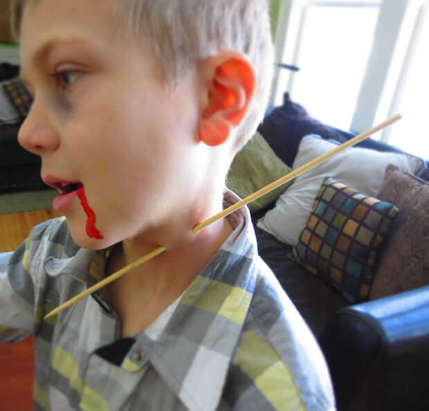 todos los productos utilizados fueron comprados en Wal-Mart durante Halloween!Paso 1: utilizando un delineador de ojos blanco para esbozar su idea de la boca.Entonces utilice el color bronceado verdoso de la pila"zombie maquillaje" todo el rostr