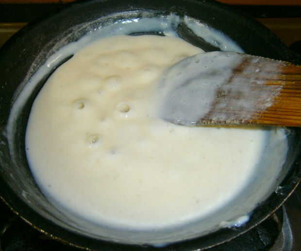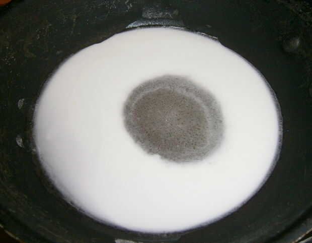 Ahora en una sartén a fuego lento añadir crema de coco, azúcar y esencia de vainilla. Deje que el azúcar se derrita. Luego agregar la leche de coco a la cazuela.