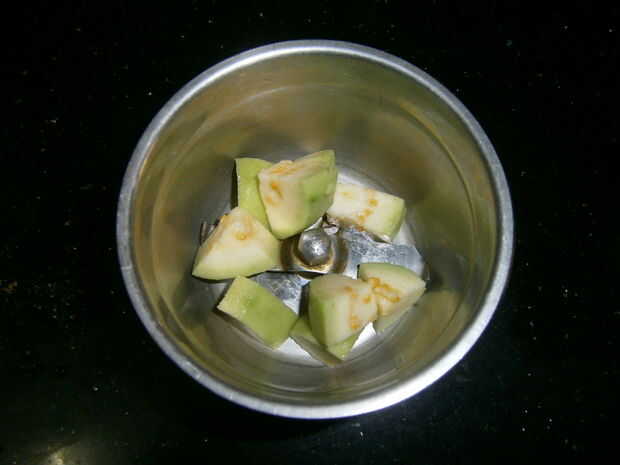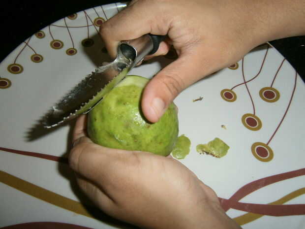 En un una batidora o procesador de alimentos moler la guayaba con 1/4 taza de agua y el azúcar hasta que obtenga una pasta crema.