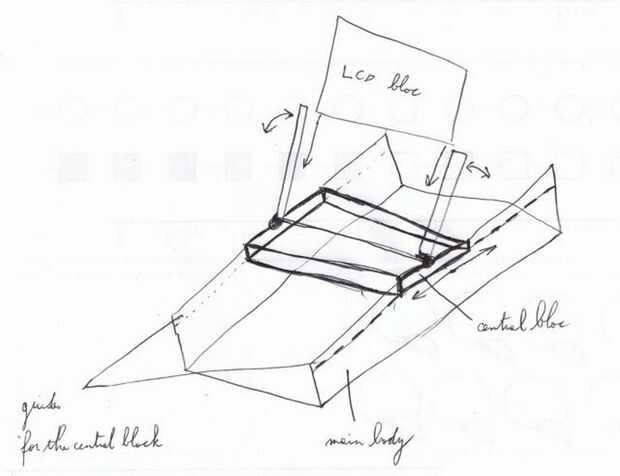 A continuación, el esqueleto mismo de la CV (solo LCD está representado, carece de Motherboard, Tarjeta madre, teclados, baterías y todas las cosas dentro del bloque central (ver paso 3).