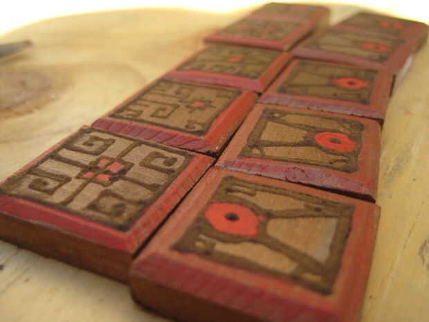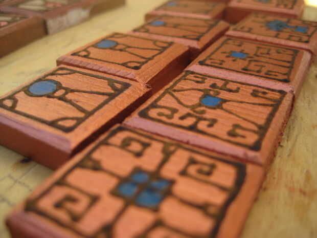 Ya que quería mantener un nepalí / tibetano estética. He utilizado diseños que dieron que sienten. Para los motivos y los símbolos de la pieza, usé henna (pasta de hoja utilizado para hacer tatuajes temporales). Esto le dio un efecto biselado contrastante. Puede imprimir figuras reales de internet y simplemente pegar en la cartulina. O laser grabado les... Sea bueno. Tenía un verano trabajo corte de acrílico con un cortador del laser de epilog para hacer signos braille para hoteles etc. No te pierdas el trabajo pero el cortador láser todavía...
