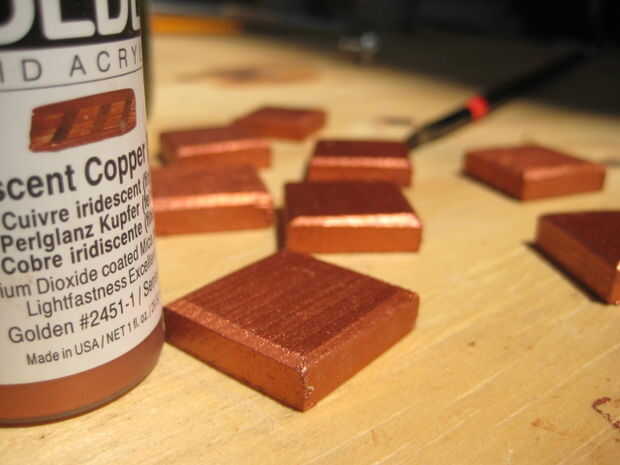 Tipo de pintura utilizado fue bronce y cobre irisado acrílico. Les dieron un brillo agradable.