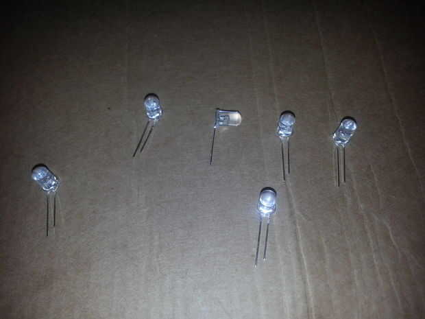 Primer paso: obtener 18 leds y doblar los cables en la misma dirección. Ver la imagen de un visual.