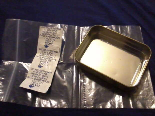 Dobló para arriba de una bolsa de ziplock grande y agrega en la lata, algo que lleve y mantenga agua es una necesidad.