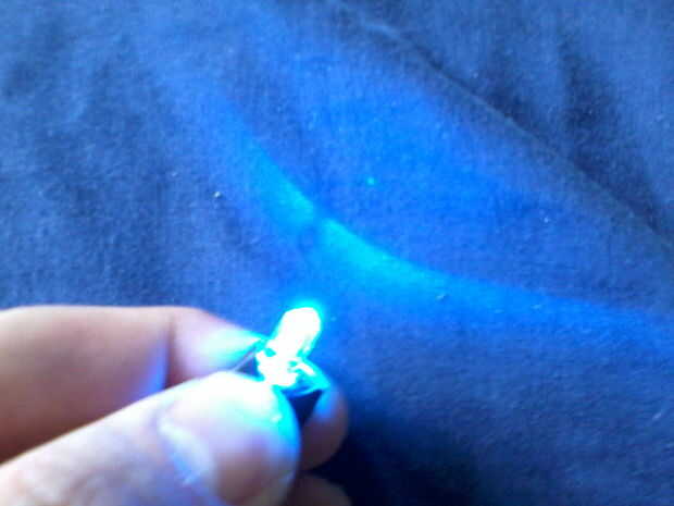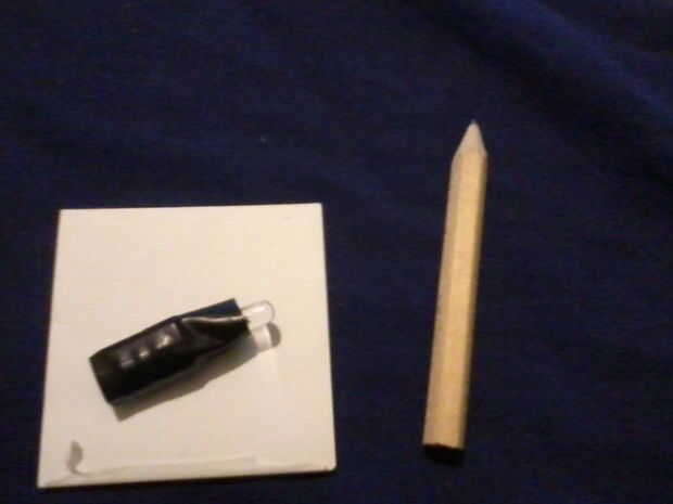 y sé que alguno se preguntará por lo que la antorcha es un pequeño pack de led y la batería de un combo barato encendedor/linterna. así era prácticamente libre, entonces lo envolvió en cinta eléctrica para mantener juntos y para evitar que un cortocircuito.