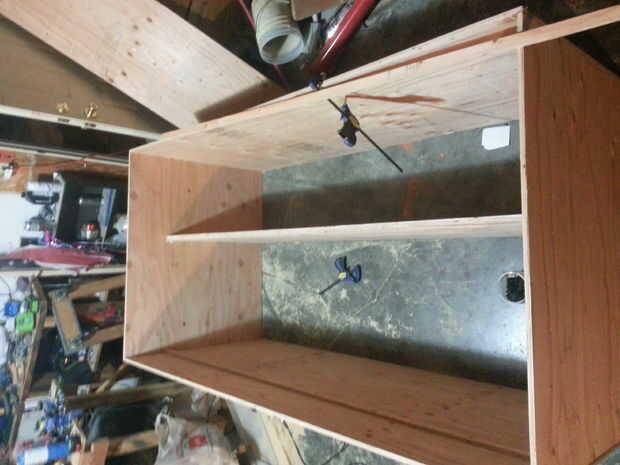 El material utilizado es madera contrachapada cdx de 1/2 pulgada y unos pedacitos de 2x4s apoyo. Madera contrachapada CDX es barata pero no termina muy bien y corta a un poco áspero que elegí este saber esto debe de ser pescadas con pintura y no manchado. Para fijar cualquier asperezas en el cdx usé barro yeso como relleno y lijado suave con papel de grano arena 120.