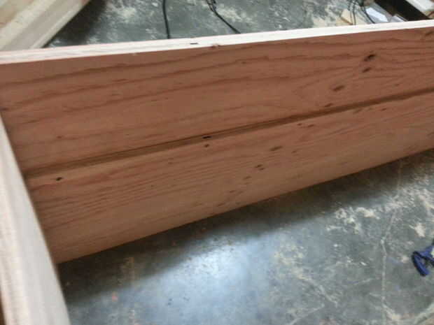 El proceso de construcción está todavía en marcha, pero que está casi terminado. Para empezar hice el marco rectangular. A continuación pongo una cala completamente alrededor del marco. La Cala resistirá la madera que soporta al colchón. Un devider centro también va. El devider separará los cajones de la zona de almacenamiento de pecho.