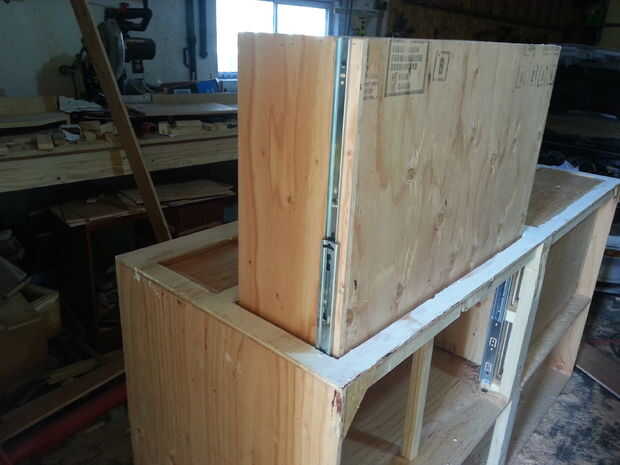 Los cajones son solo cajas con tapa de no. Otra vez se requiere tamaño exacto y lo cuadrado para que coincida con las correderas. Hay espacio para el ajuste y no se desanime si no perfectos la primera vez. 3 de mis 4 cajones tenía que cortar porque estaban demasiado amplias. No se preocupe solo ajuste.