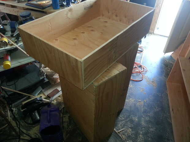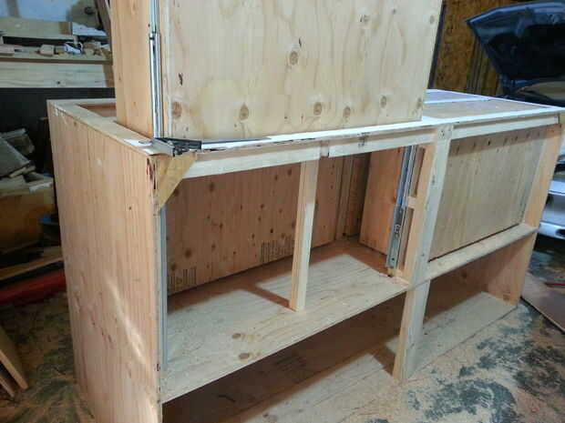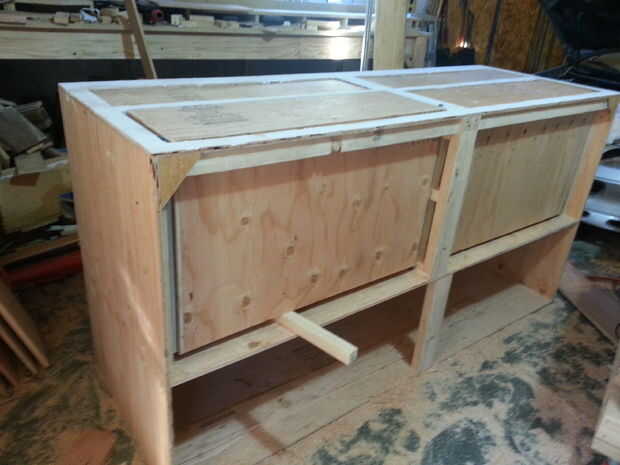 El último paso es hacer la tapa de pecho. Detrás de los cajones en el espacio va a ser un pecho. Sólo será accesible por tirar fuera del colchón. No es ideal pero será un gran trabajo para artículos de temporada y rara vez necesitadas cosas.