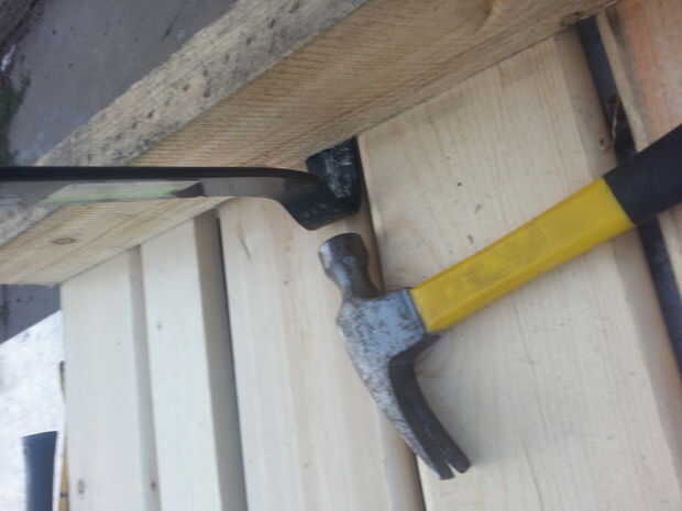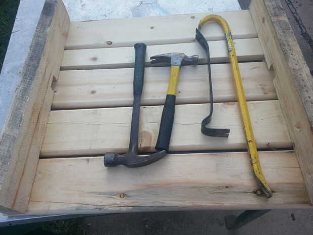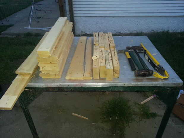 Los materiales utilizados fueron 2x4s para enmarcar. Madera contrachapada CDX de 3/8 para las paredes (no quería drywall ya que puede rajar de las puertas del armario). Y fue reclamado el estante material madera de palet. Hay una tienda de impresión especializada en mi ciudad natal que obtiene paletas muy agradables para los rollos de papel. Estas plataformas utilizan madera lijada agradable que completo sobre los bordes para no romper el papel.