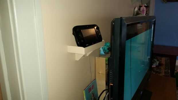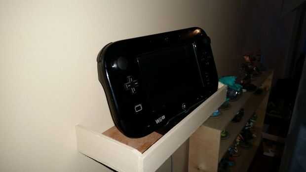 La Nintendo wii u tiene un gran toque pantalla gigante portátil como su insignia de mando. Es una fabulosa pieza de hardware de videojuegos. También es algo frágil y necesita ser cargada regularmente. Tienen niños pequeños y niños alrededor de todo lo que necesita frágil protegido y carga los cables son peligrosos. Para solucionar este problema hice un lindo estante para la u de wii remoto que se esconde detrás de nuestra tv.