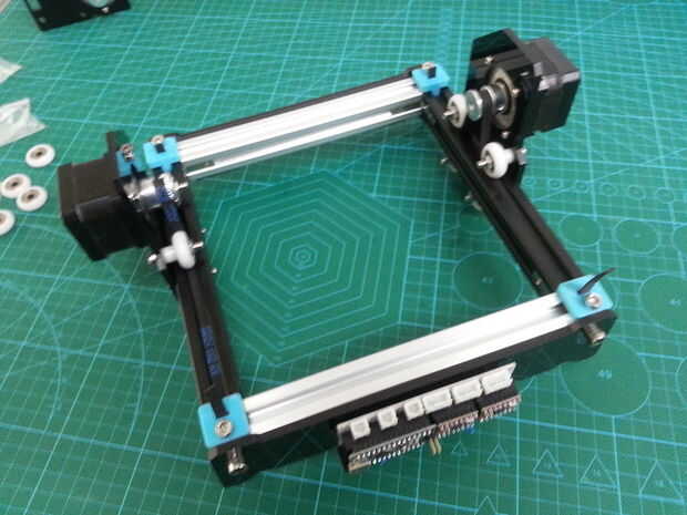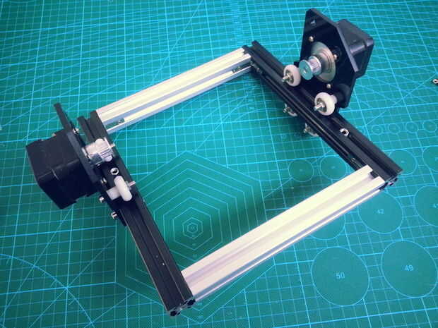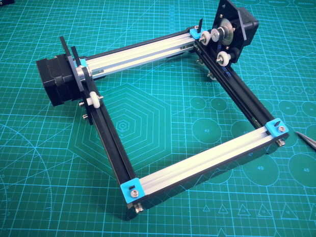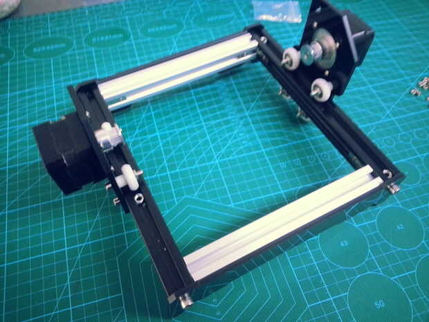 Esta máquina está diseñada para hacer el láser grabar en madera y opaco de plástico, con un Arduino y el GRBL como base de la automatización de la máquina. El eje de la máquina son sólo los ejes X e Y, que mueven un láser con potencia 1w 445nm, y est