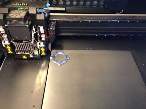 Con mi diseño completo me dirigí para las impresoras de Objet en el muelle. El collar se podría haber hecho cualquier número de formas de madera, metal, plástico, pero otro objetivo del proyecto era utilizar las impresoras 3d para fabricar un componente, por lo que mi cuello fue diseñado en torno a su proceso.