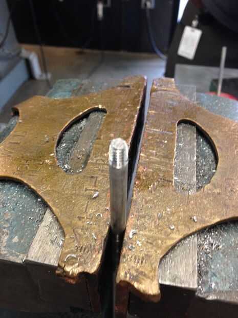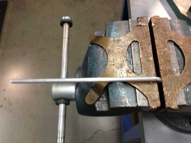 Las piernas fueron flexionadas entonces a 90 en un vicio. Fueron golpeados con un lija de grano 800 luego para darles un acabado mate uniforme.