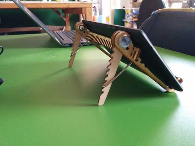 tablet stand de sobras laminadaspuede tratar de crear el prototipo de cartón para encontrar el tamaño óptimo...y se puede utilizar "Láser" de corte para cortar bonito