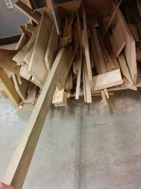 Elegí una obra realizable de madera dura de los contenedores de desecho en el TechShop en Pittsburgh. Limpiar los bordes de la chatarra para terminar con un tablero de aproximadamente 2 "x 3" x 29"- el ancho específico y la longitud no importan como cabe en el armario. 3" está bien de ancho, y se puede utilizar la longitud de su camisa como un cálculo aproximado de lo que colgar cómodamente en tu armario.