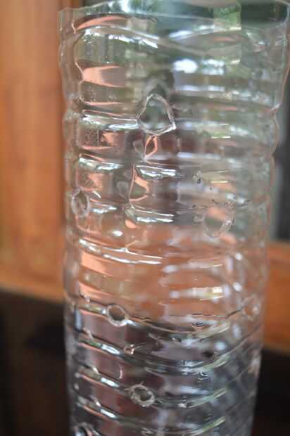 Para ello he utilizado una botella de 1 litro. Primero, cortar la parte superior de la botella. Luego, hacer agujeros a los lados! Recordar que no hay dos agujeros deben estar en la misma línea vertical. Trate de hacer los agujeros al azar . Esto ayuda a todas las semillas para obtener igual cantidad de sol y agua.