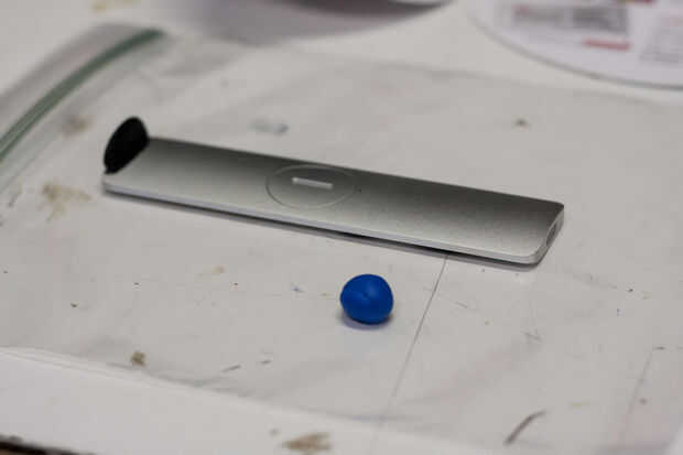 Parte del restante Sugru (o un color diferente, si quieres), molde de otra pieza en la parte posterior del control remoto. Esto mantendrá el nivel remoto cuando se coloca horizontalmente sobre una mesa o escritorio. Cuando moldeado, constantemente Verifique si el control remoto será nivel establecido. Una vez que termine esta pieza, girar el mando a distancia en su cara y deje que la curación de Sugru durante 24 horas.