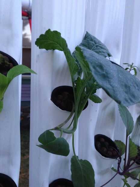Hidroponia vertical se presta muy bien a vegetales de hojas verdes. Actualmente estoy creciendo con éxito lechugas (lechuga romana, babero de boston, mezcla de primavera), coles (rojos y verdes), hierbas (albahaca, cilantro, menta, eneldo, cebollino), espinacas, col rizada (enano rizado variedad), brócoli y petunias.