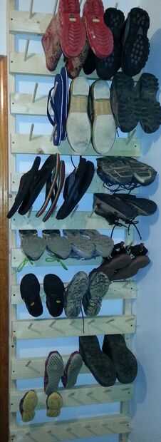 Bienvenido a mi medida, estante del zapato que construí en mi garaje. Con mal olor, zapatos mojados o sucios es un burdon que todo el mundo tiene que lidiar con. Teníamos montones de zapatos en diferentes salas, en los armarios y sótanos. Decidí que tenía lo suficiente y que iba a construir un sistema que nos permite poner nuestros zapatos en un solo lugar y reducir al mínimo la cantidad de espacio requerido. Esto construí para mí y mi familia, pero quería compartir con todos vosotros espero inspirar a alguien a construir algo.