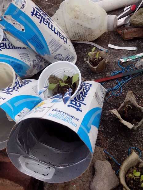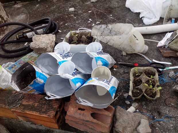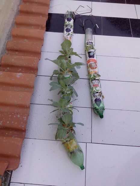 São os verticanteiros. Devem ter 4 una 6 jarros, sendo o primeiro e o último não abrigam plantas, só una mistura de terra (solo úmido peneirado, três partes); Celulose (serragem, hojas secas o papel picado, duas partes) e húmus de minhoca (parte de la uma). Una estrutura com os drenos, amarrações e garrafas podem ser reaproveitadas em novos jarros.