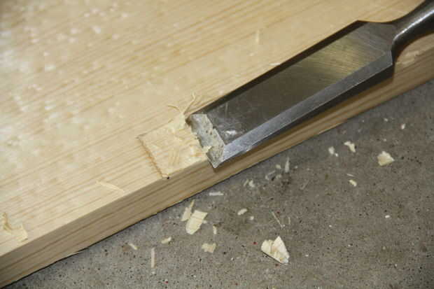 Sobre reflexión creo debo haber 3 bisagras. Puedo añadir uno eventualmente si la madera decide desea deformar. Cortar la madera para las bisagras se llama Mortajado. Hay un número de máquinas y "jigs" para routers y otras herramientas. Tengo ninguna de esas cosas y optaron por un cincel y un martillo. Me marcó la longitud de la bisagra y luego la profundidad y había trabajado lentamente lejos la madera. Las bisagras se atornillan entonces en (los agujeros fueron perforados primera; siempre perfore). Deberás hacerlo en la puerta y la caja.