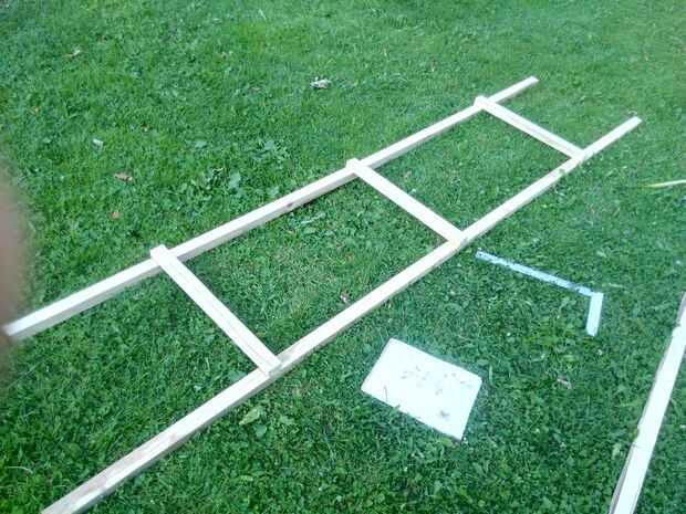 lista de materiales reciclados:paneles de valla de cedro (los lados se construyen dos paneles de espesor por 1/2 un panel).1/3 de un bastidor de futón (esta hecha la cama del jardín)2x4s de un proyecto anterior (para reforzar la estructura de futón)p