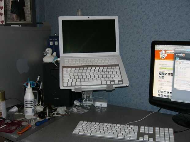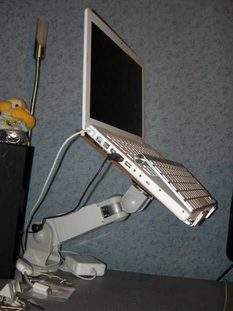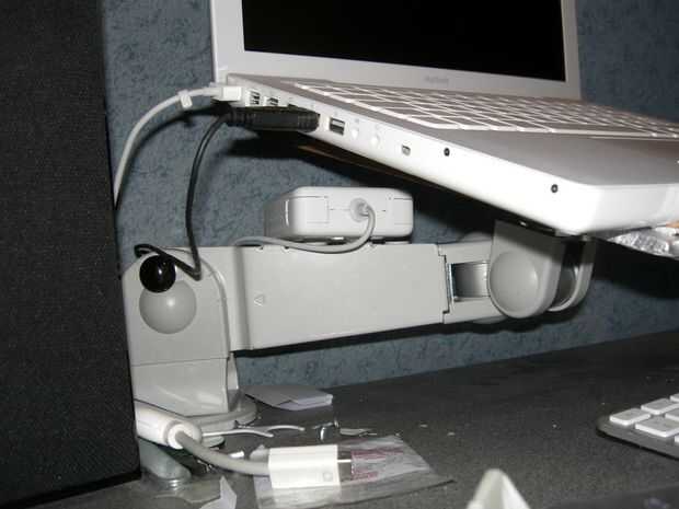 Había también tengo yo un brazo vesa, con la intención de utilizarlo para un segundo monitor. Por lo tanto, mi cerebro en acción, y se me ocurrió-lo que podría ser esencialmente, el soporte ajustable del ordenador portátil más versátil jamás se ha hecho. Porque el brazo vesa debe soportar mucho peso, soy más que feliz de tener mi macbook se sentó en él!