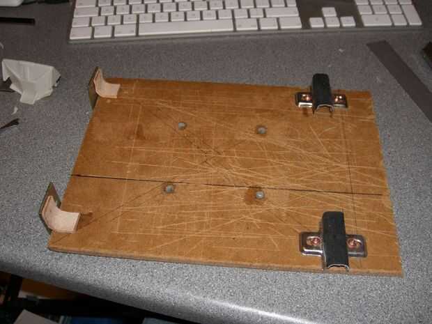 - Foto 2 - que luego ha añadido los 'bits de canalización vertical' (siendo un par de ménsulas para bisagras ubicados) dentro de donde se encuentra la parte de atrás de la computadora portátil.