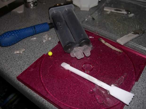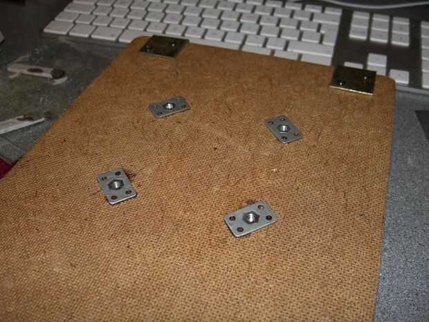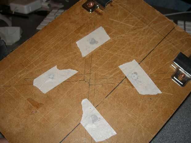 - Fotografías 2, 3 & 4 - pegar los orificios de tornillo en su lugar usando la resina de epoxy - ambos super pegamento y pva no funcionan! Coloque cinta adhesiva en el otro lado para detener el epoxi funciona hacia fuera.