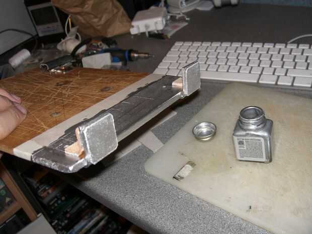 Así, ha añadido un par de trozos de tarjeta al frente de los soportes en L y había pintado el frente 10cm en pintura plata metalizada.