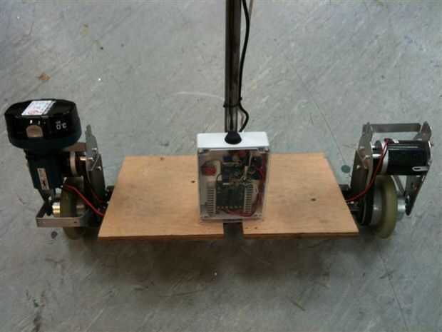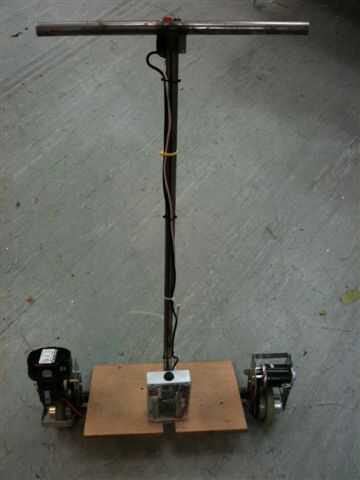 Una unidad de equilibrio en posición vertical es igual a un monopatín pero las ruedas están más separadas y el tablero es la vuelta 90deg así que el extremo posterior del scooter niños fueron utilizados. Eran bastante pequeñas pero eran rápido y fácil para probar.