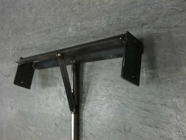 Se agregó una pieza de refuerzo de ángulo de la manija en posicion vertical a la segunda pieza de ángulo de acero. Ahora, las ruedas se pueden empernar en.