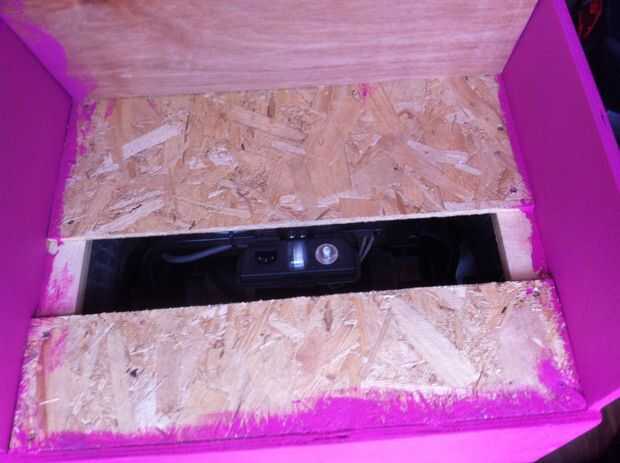 Debajo de la cama plana, utilicé 2 piezas de 2 x 1 bastón y fijo 2 pedazos de OSB dejando un espacio entre ellas lo suficientemente grande para el conector de carga